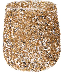 TEALIGHTHOLDER 8CM BEADED GOLD