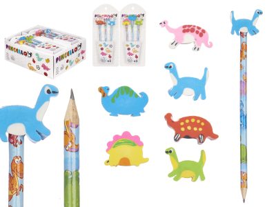 PINCELLO SET 3 PENCILS WITH ERASER DINOSAURS