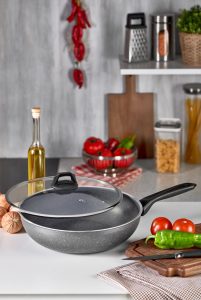 COOK&JOY GRANİT GREY 28CM KAPAKLI XL WOK TAVA