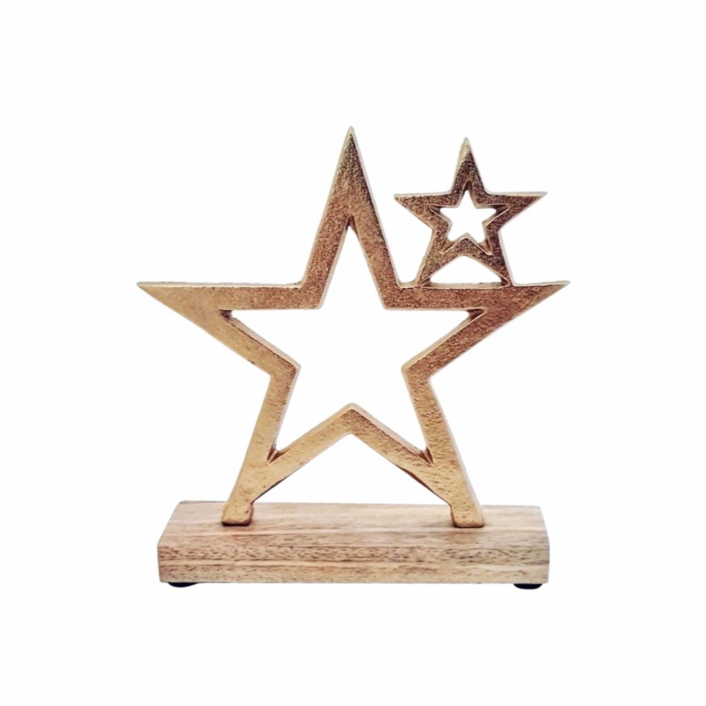 *16cm yüksekliğinde ahşap standlı metal gold dekoratif yıldız obje