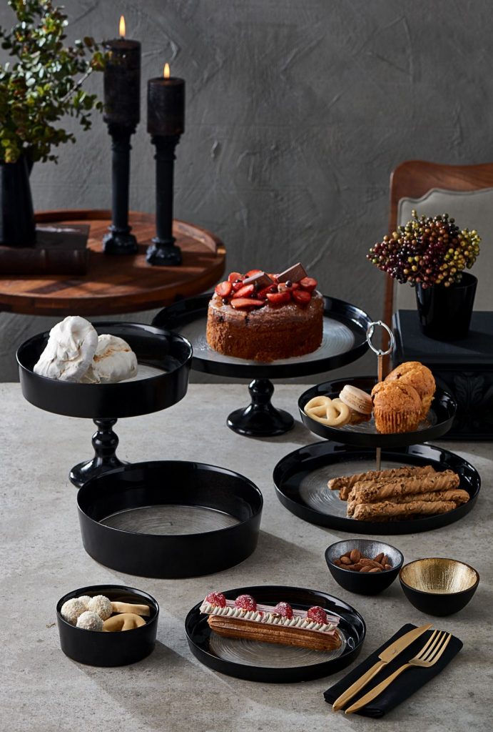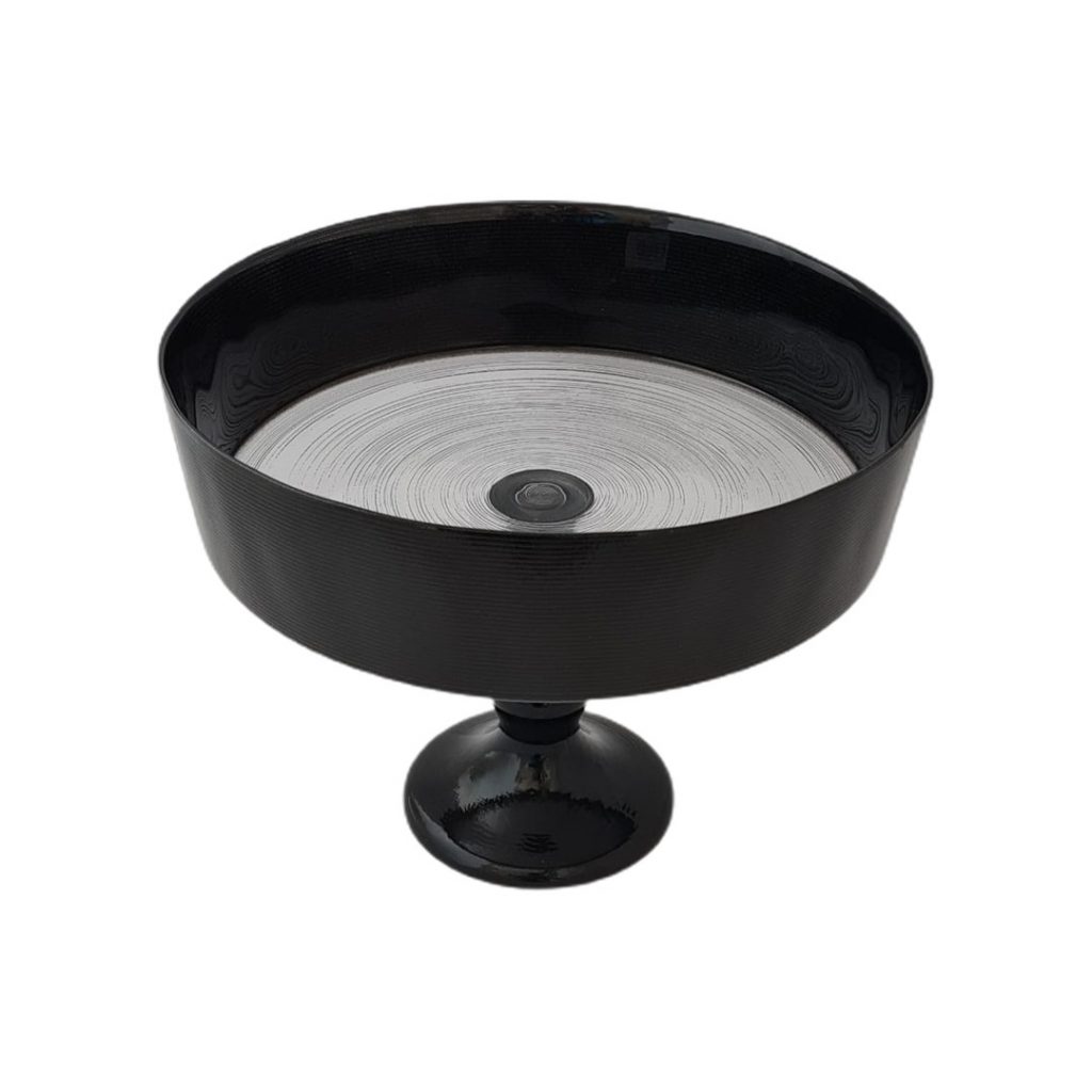 1 adet 24cm, siyah detaylı ,ayaklı ,derin cam servis