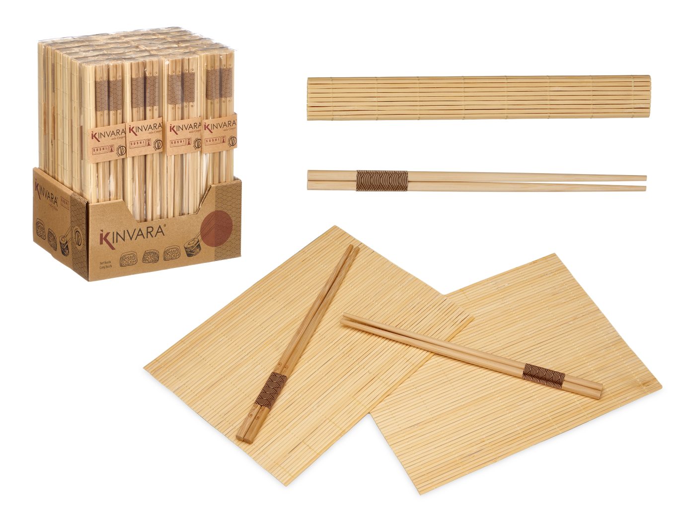 ASİAN SUSHI SET 4 BAMBOO CHOPSTICKS AND 2 MATS