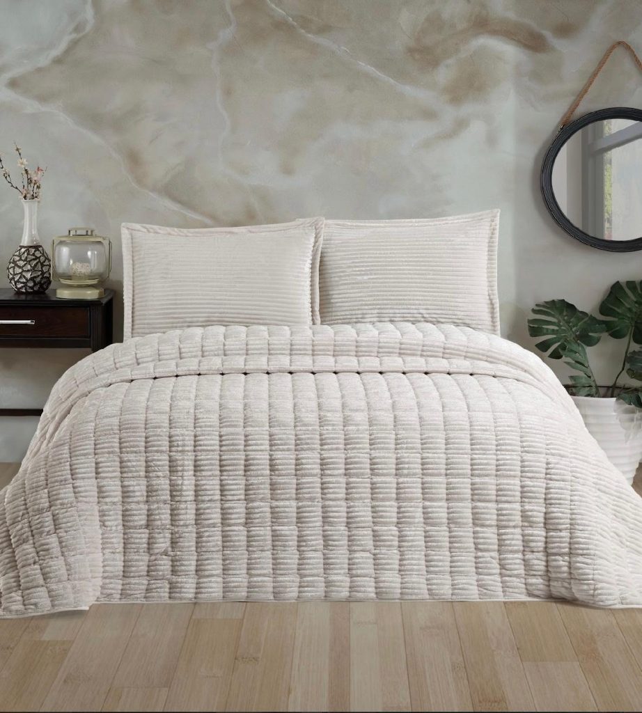 ASOS 260X230 3 PARÇA YATAK ÖRTÜSÜ KREM //SAKLAMA ÇANTA HEDIYELI