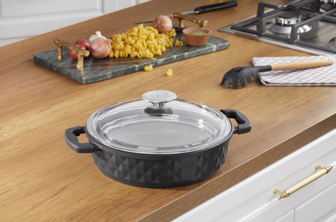 BELLA DÖKÜM GRANİT CAM KAPAKLI 26CM SIĞ TENCERE