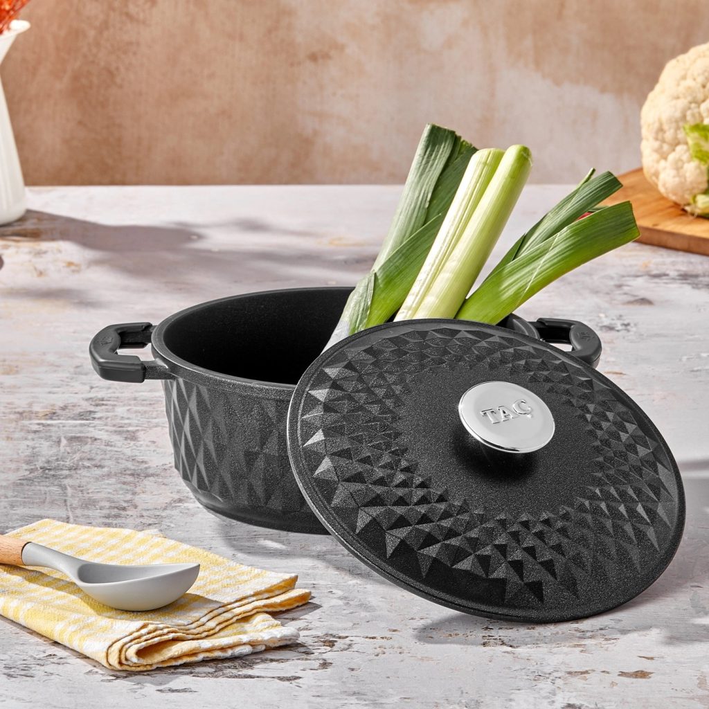 1 Adet döküm kapaklı 24 cm döküm tencere.