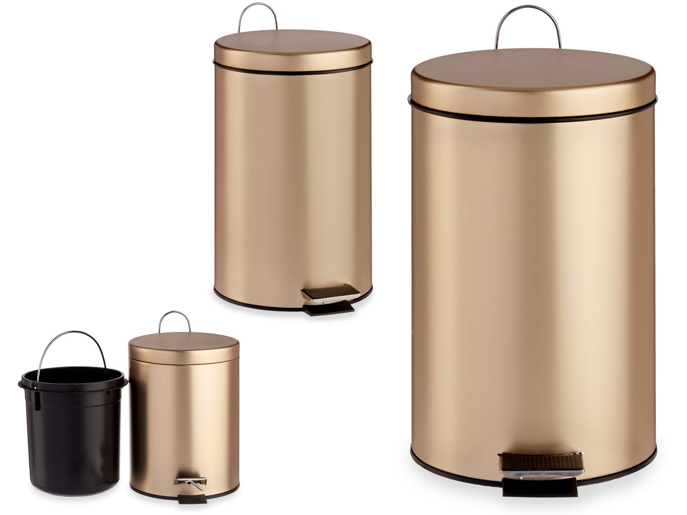 1 Adet mat altın renkli 7 litre çöp kutusu. Ürünün temizliğinde kimyasal temizlik maddesi ve çizebilecek sert malzeme kullanılmaması tavsiye edilmektedir.
