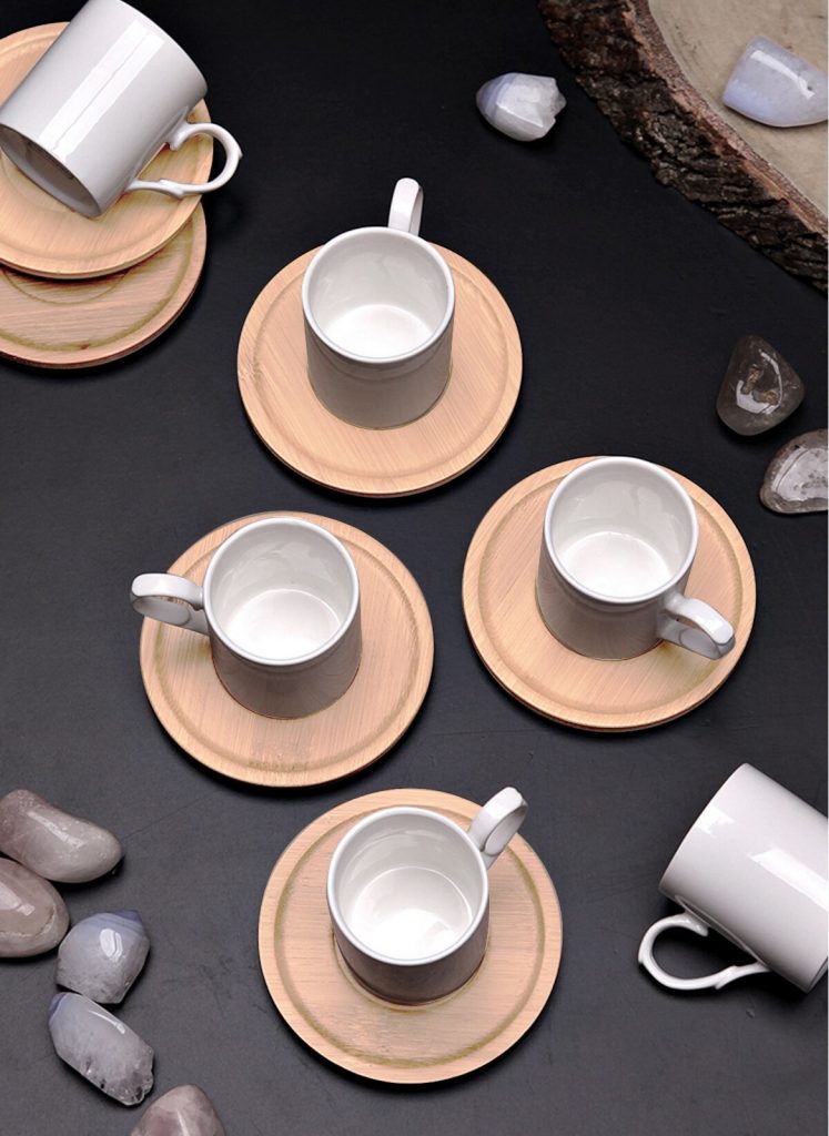 - 6 adet Bambu kahve fincan tabağı