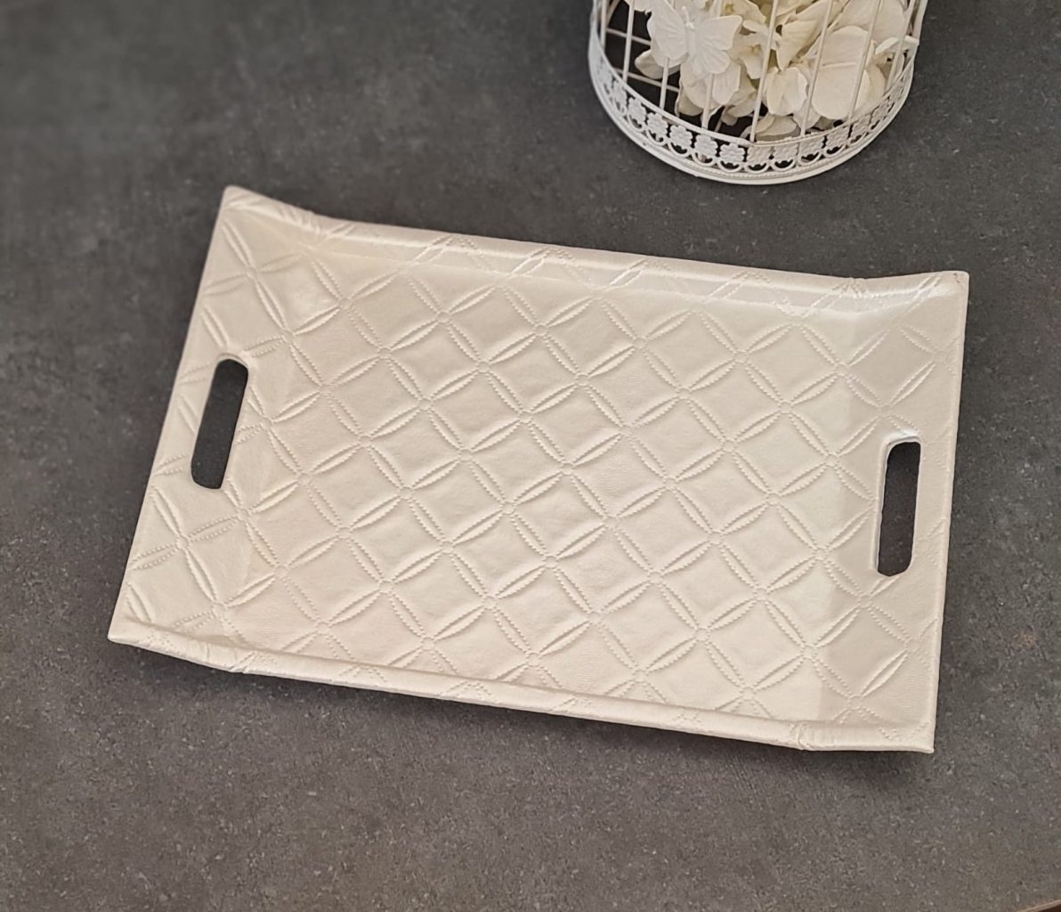 DERİ BEYAZ KAPİTONE TEPSİ 28X41CM