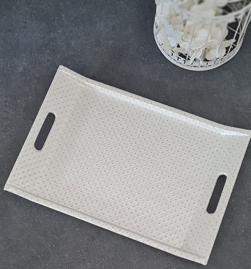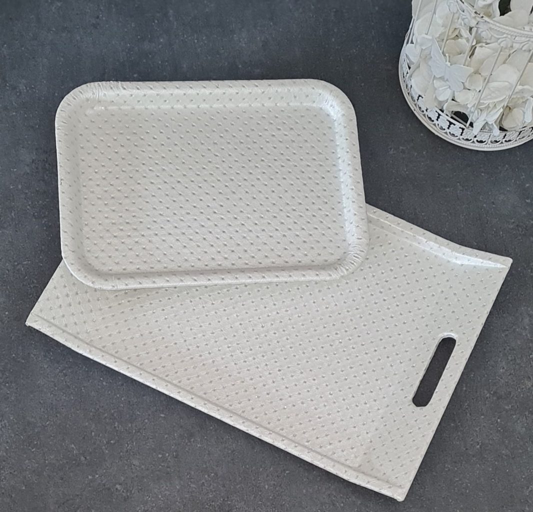 DERİ BEYAZ SİMLİ TEPSİ 28X41CM