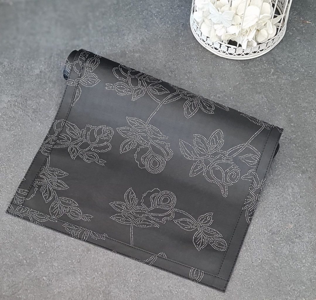 DERİ RUNNER SİYAH SİMLİ ÇİÇEK 40X140CM