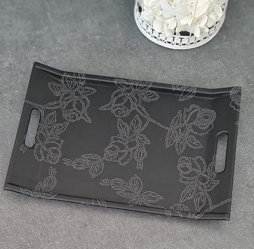 DERİ SİYAH SİMLİ ÇİÇEK TEPSİ 28X41CM