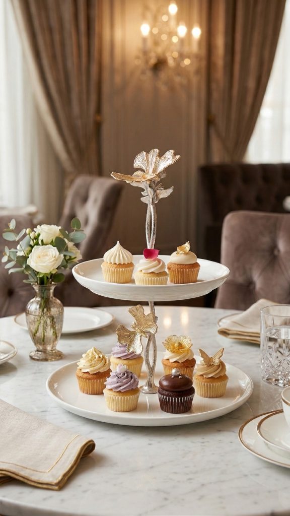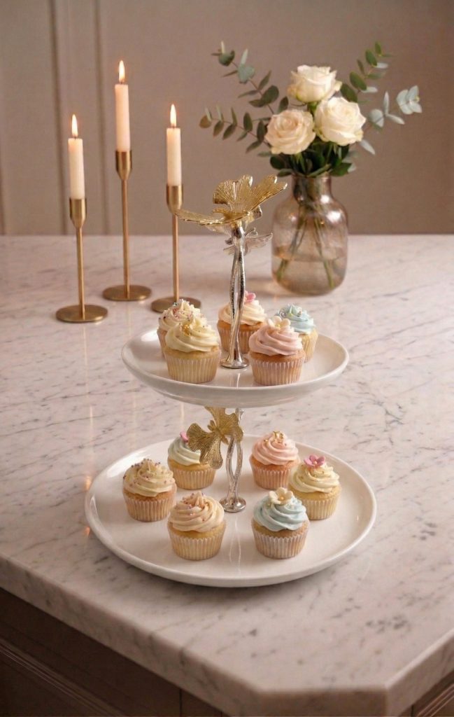 KELEBEK İKİ KATLI YUVARLAK SERVİS BÜYÜK BOY GÜMÜŞ
