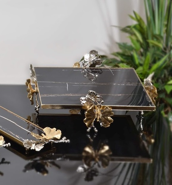 KELEBEK MERMER STAND 24X24 SİYAH GÜMÜŞ