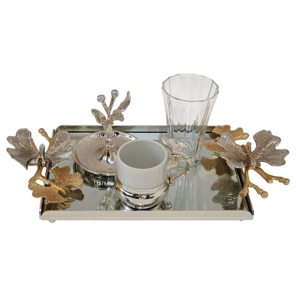 KELEBEK TEKLİ KAHVE SETİ GÜMÜŞ