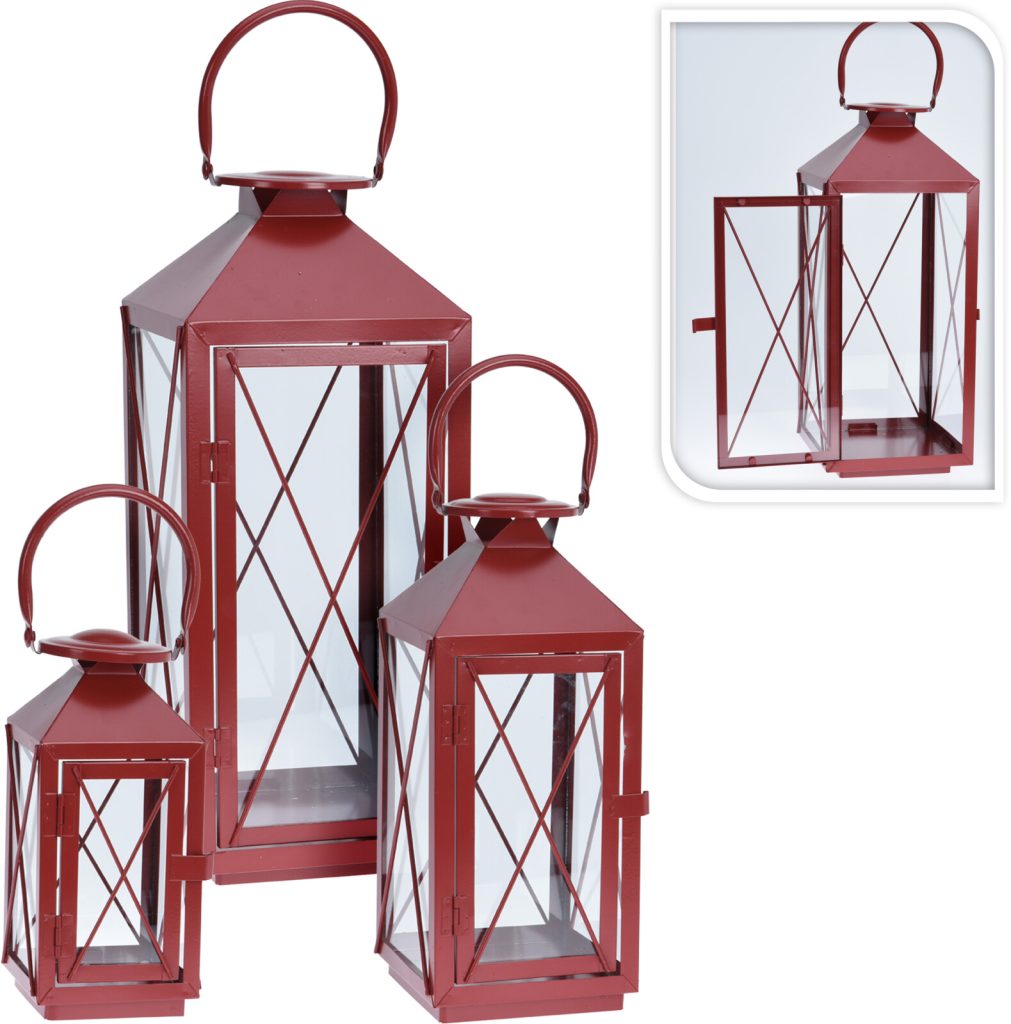 LANTERN METAL SET OF 3 RED