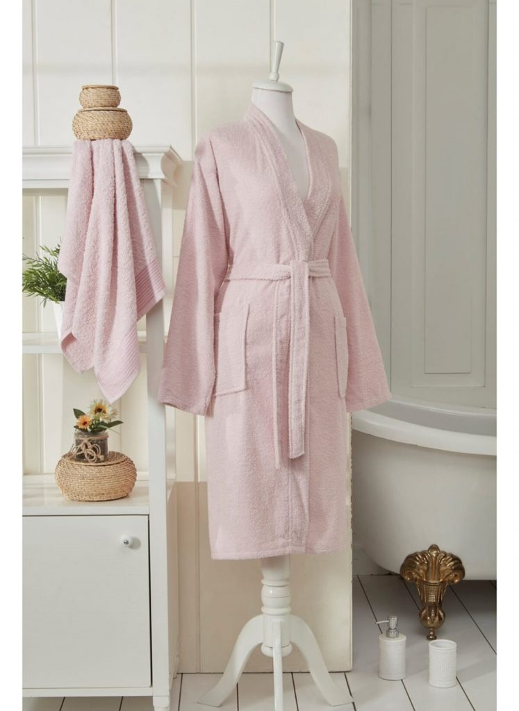 MİA L/XL PEMBE BORNOZ+BAŞ HAVLUSU TAKIMI