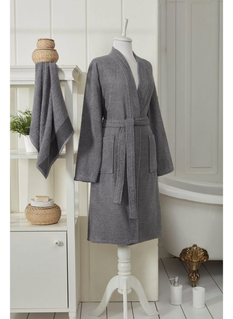 MİA S/M ANTRASİT BORNOZ+BAŞ HAVLUSU TAKIMI