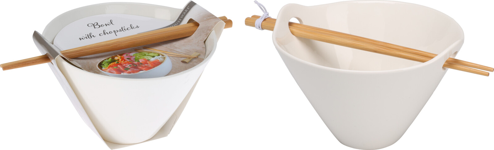 1 Adet porselen noodle kasesi ve 2 adet chopstick.