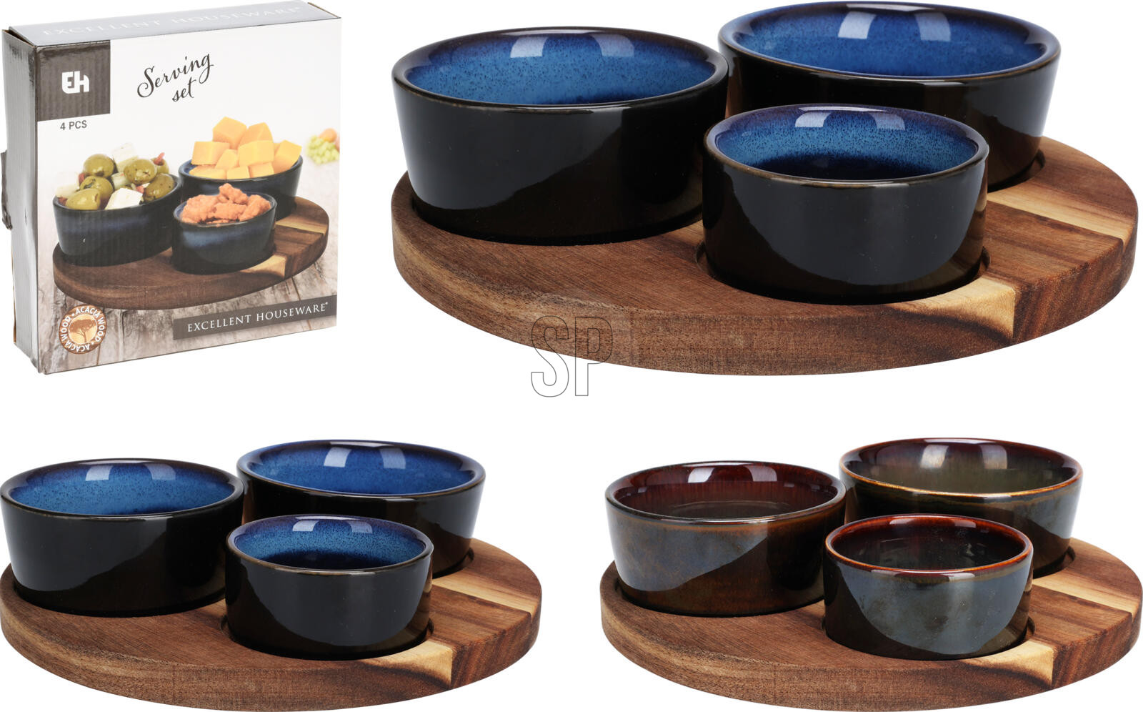 1 set Ahşap standlı 3 lü stoneware çerezlik.