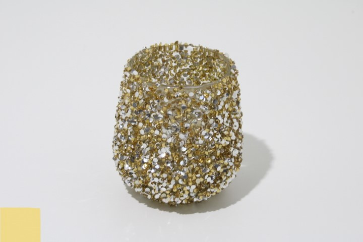 TEALIGHTHOLDER 8CM BEADED GOLD