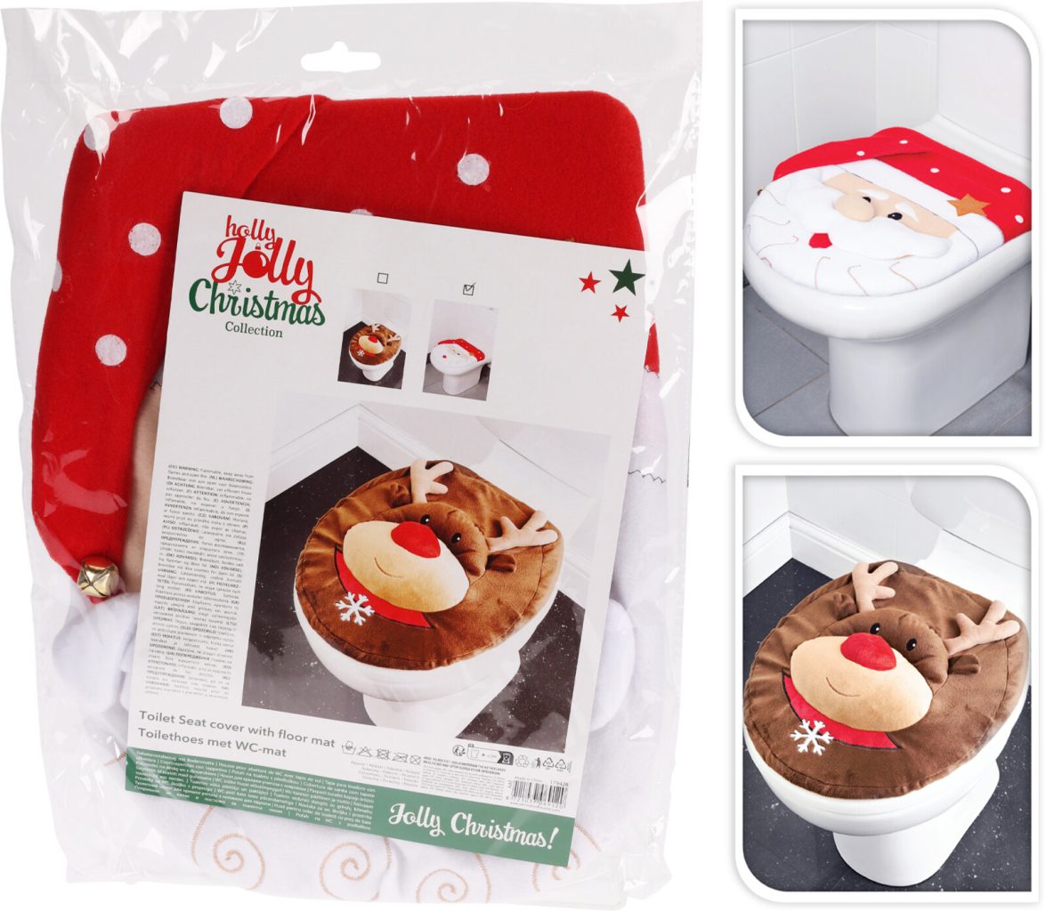 1 Adet yeni yıl tasarımlı tuvalet kapağı kılıfı