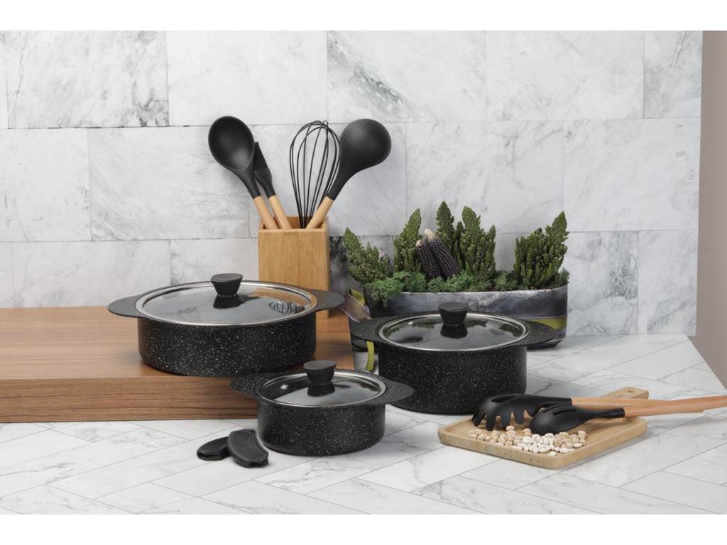 TRIO SIYAH 6 PARÇA SILIKON SAPLI GRANIT TENCERE SETI