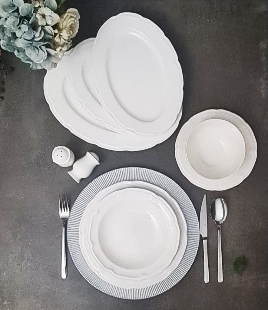 VERONA 53 PARÇA 12 KİŞİLİK YEMEK TAKIMI -12 Adet Servis tabağı -12 Adet Çukur yemek tabağı -12 Adet Pata tabağı -12 Adet Çorba kasesi -1 Adet Tuzluk -1 Adet Biberlik -1 Adet Büyük boy kayık tabak -2 Adet orta boy kayık tabak