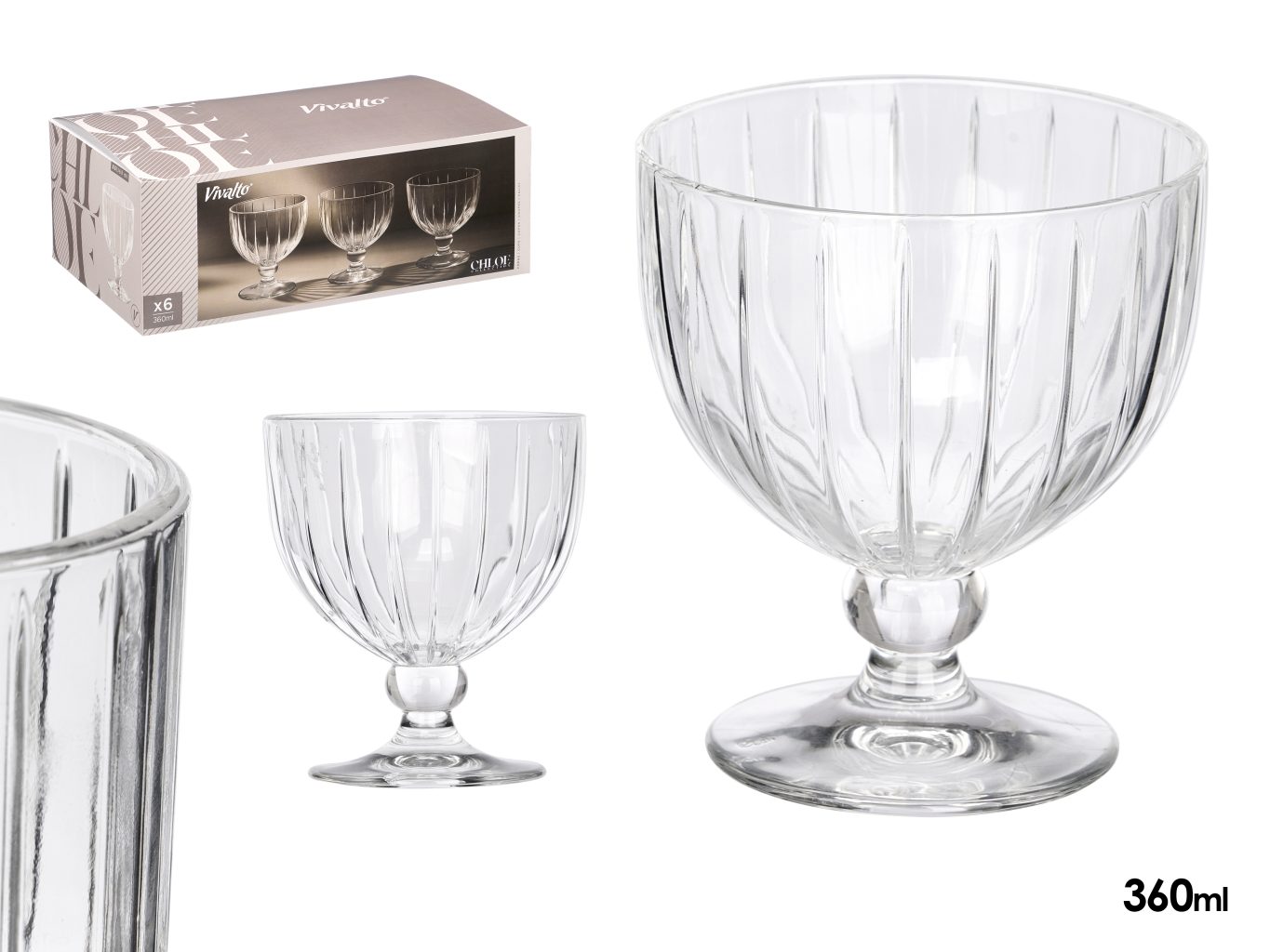 VİVALTO 350ML TRANSPARENT STRIPED 6LI DONDURMALIK/CUP SERVİS